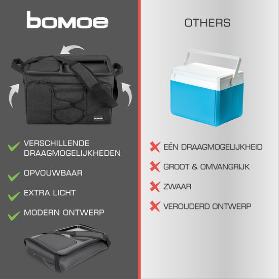 - Bij bol.com kun je bomoe KT43 – Opvouwbare Koeltas Antracite 45l – Koelbox voor Onderweg – 43x32x28 cm – Picknicktas voor Barbecues Festivals voor slechts €48,99 kopen